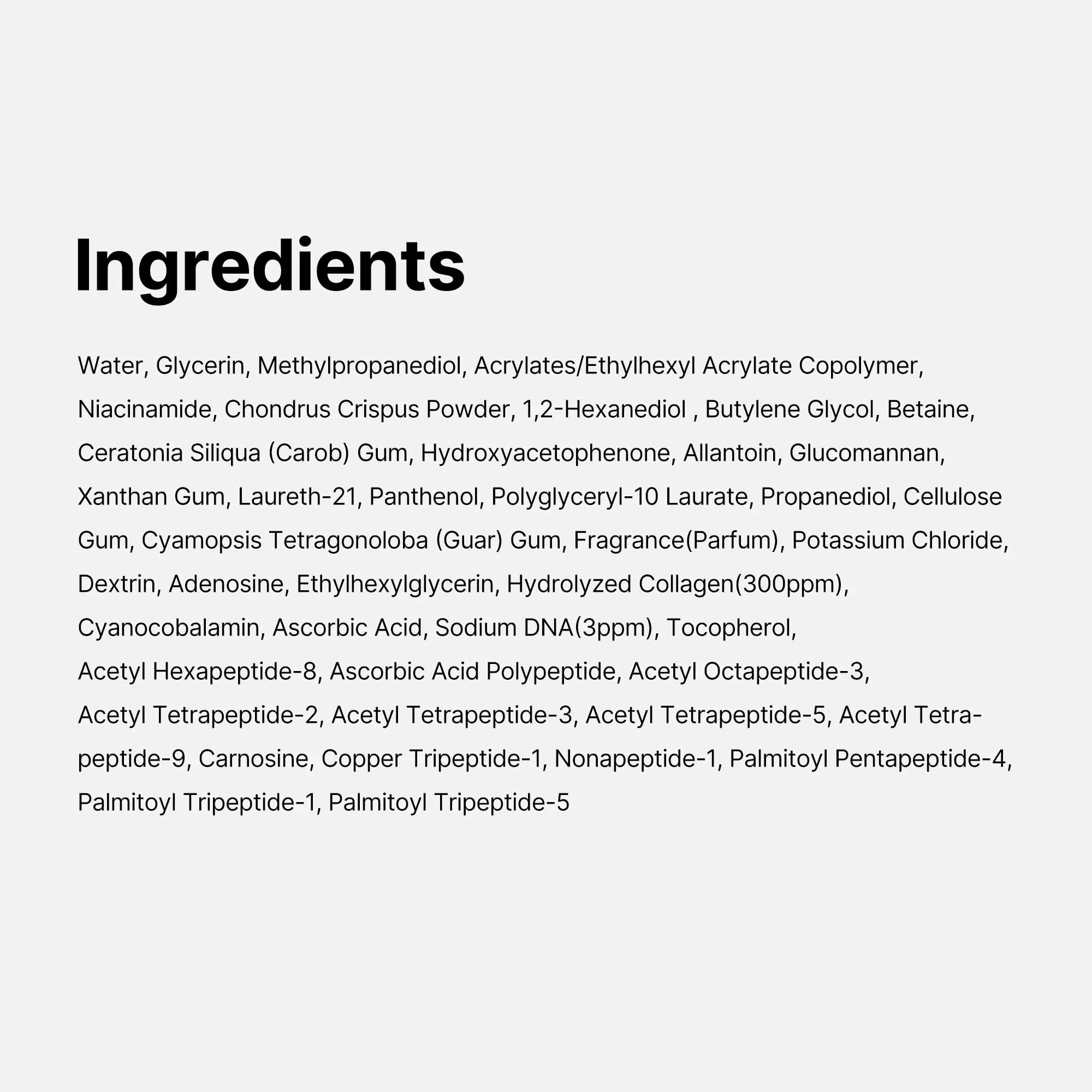 • Salmon PDRN: Known for its ability to improve skin elasticity and restore the natural barrier function, helping to reduce the appearance of enlarged pores and uneven skin tone.